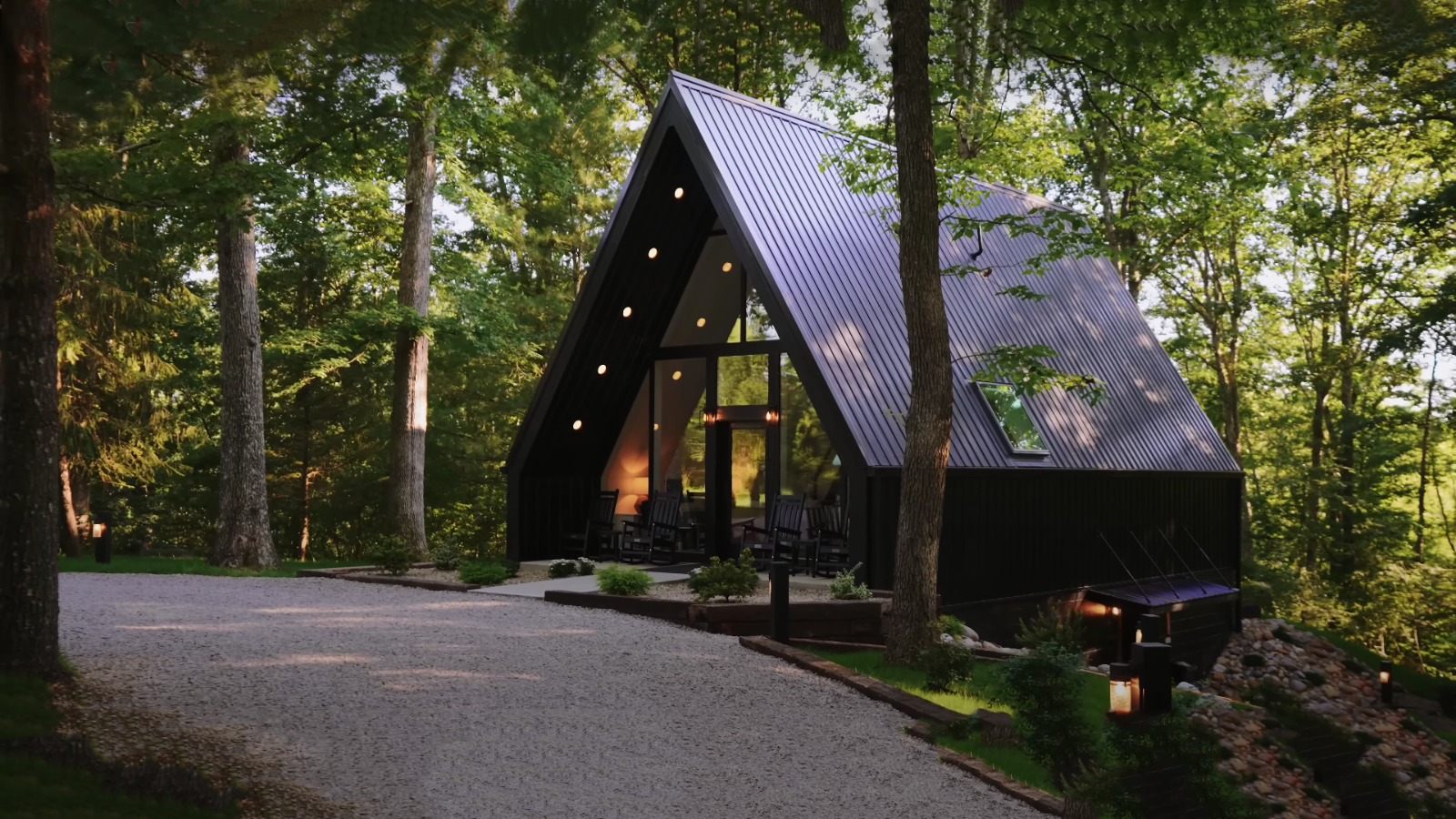Inspired by the rustic charm of traditional A-frame cabins, our house combines timeless design with modern comforts. Its distinctive triangular shape not only blends seamlessly with the natural surroundings but also maximizes space and captures abundant natural light throughout the day. Step inside, and you'll be greeted by soaring ceilings, exposed wooden beams.